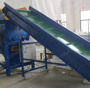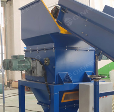 4軸破碎刀片工作時,兩個不同旋轉(zhuǎn)方向的平行刀片軸開始旋轉(zhuǎn),形成波浪向下夾持,使物料不斷向下運動,經(jīng)過切割刀片后,破碎成更小的塊狀物質(zhì) . 然后風機輸送將物料吹入料倉,儲存一定量,然后物料在熱熔機中熔化。